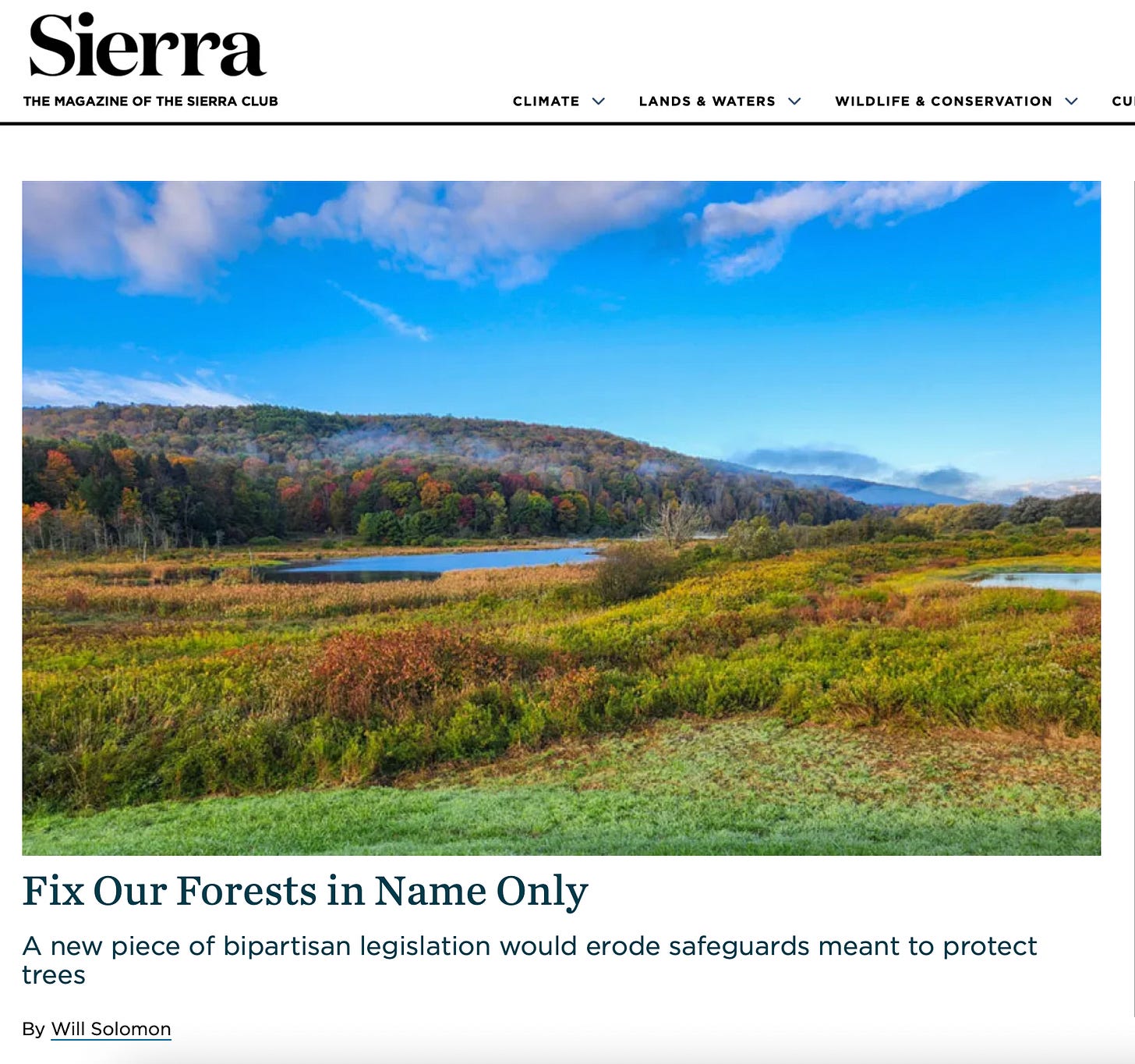I’ve got a new story running in Sierra Magazine on the Fix Our Forests Act (somehow its real name), a bill which would gut the rather minimal protections American forests still have. Plenty of Democrats on board with it, by the way.